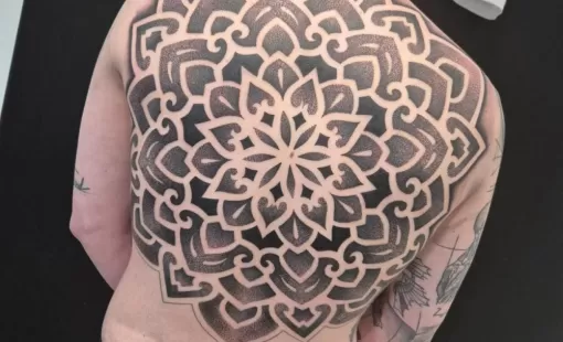 CodyB4nk a réalisé un mandala sur un dos entier dans votre salon de tatouage à Brest.